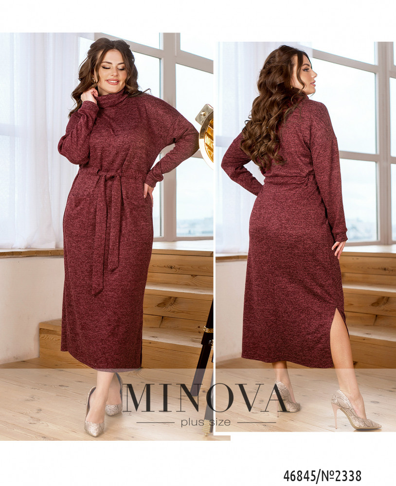 Теплое комфортное платье, выполненное из мягкой ангоры софт, позволит модницам в любую погоду и время года выглядеть женственно и привлекательно. Модель с длинными приспущенными рукавами и высоким воротником дополнена накладными карманами, поясом на кулиске и разрезами на подоле по бокам. Такое платье можно носить как с кроссовками или грубыми ботинками, так и с изящными туфлями или ботильонами на каблуке.