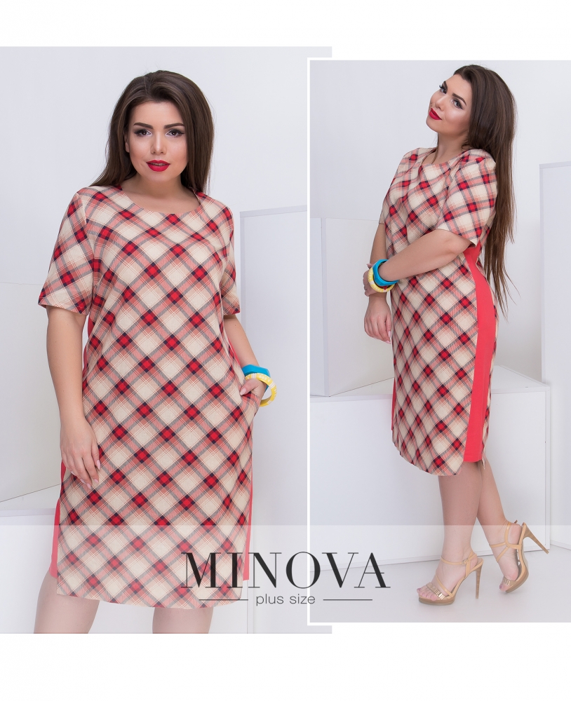 Лаконичное льняное платье прямого кроя с короткими рукавами боковыми цветными вставками. На спине есть выточки и разрез по линии шага.