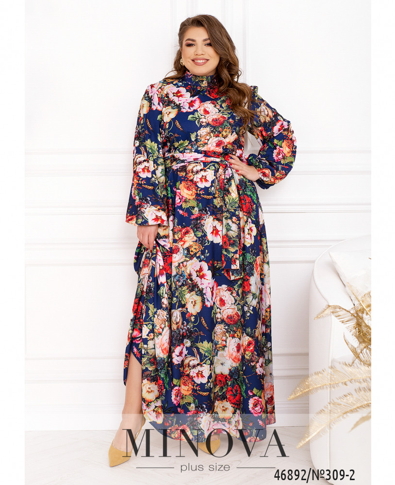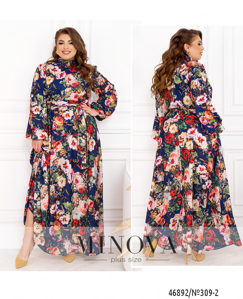 46 р-р: длина платья 147см, длина рукава от горловины 75см, длина рукава от плечевого шва 66см, обхват рукава 41см, ОГ - 102см, ОТ -96см.