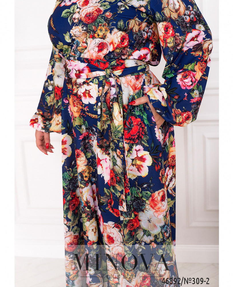 Легкое и воздушное платье макси подчеркнет хрупкость и утонченность женской фигуры. Модель отрезная по талии дополнена воротником-стойкой, карманами в боковых швах и широкими епископскими рукавами с резинками вместо манжет. Образ завершает текстильный пояс в тон, который входит в комплект.