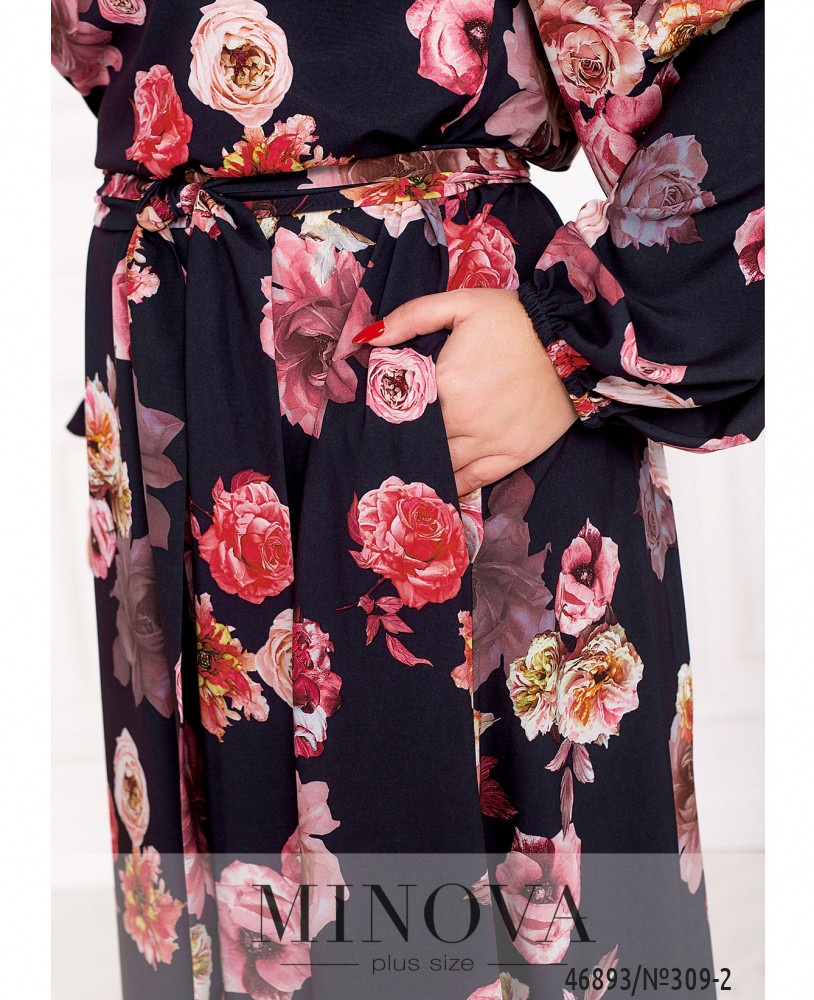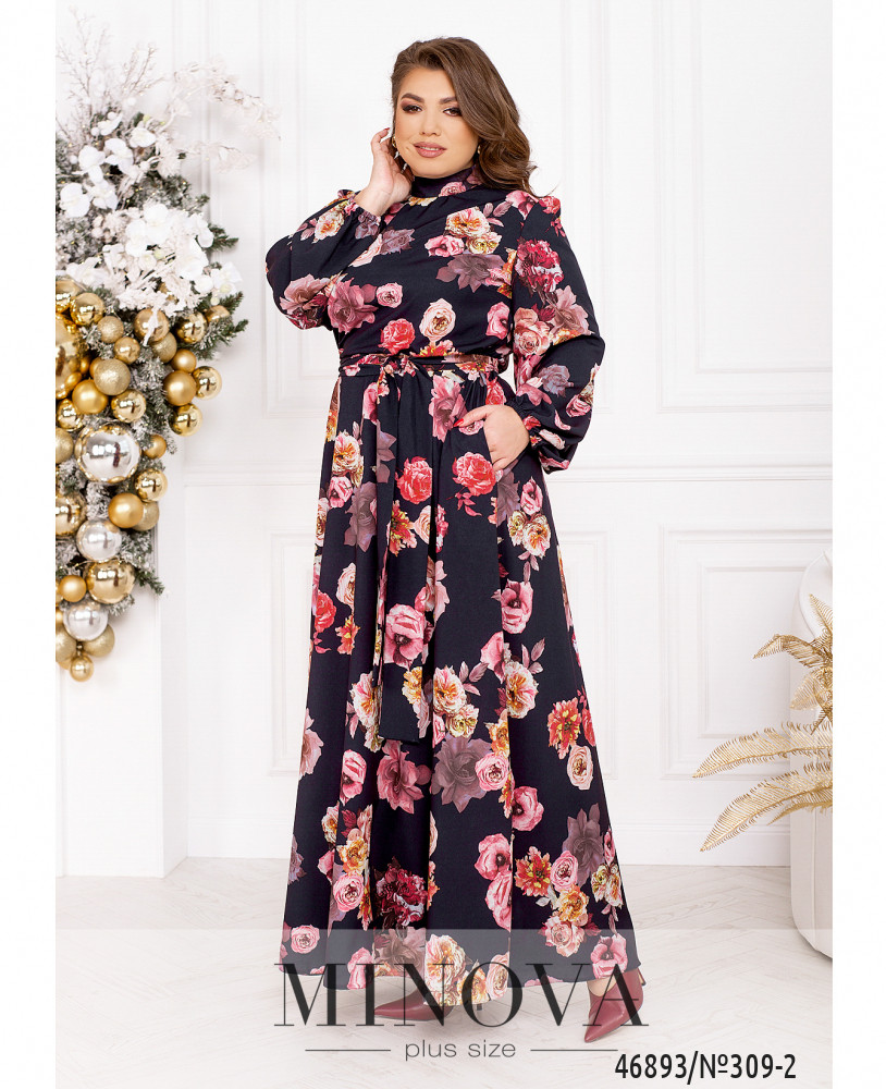 46 р-р: длина платья 147см, длина рукава от горловины 75см, длина рукава от плечевого шва 66см, обхват рукава 41см, ОГ - 102см, ОТ -96см.