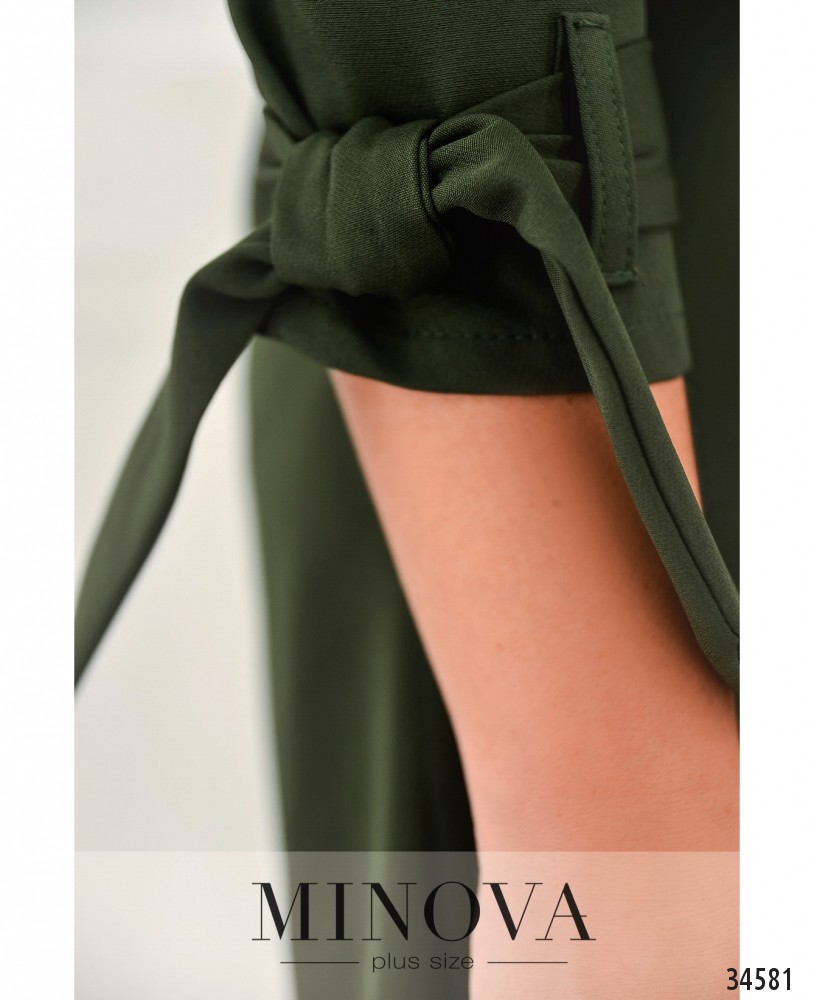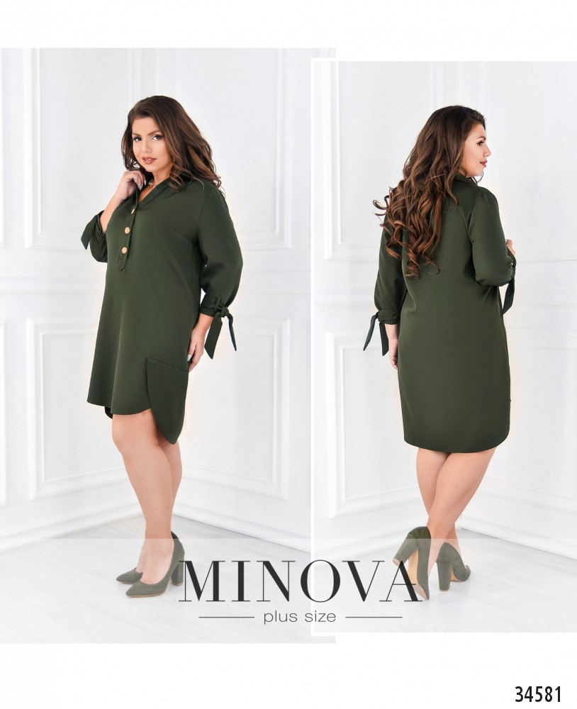 Оригинальный крой – залог создания привлекательного наряда! В представленной в новом каталоге Minova модели платья батал сразу несколько интересных элементов. Во-первых, необычный подол, подшитый по бокам на запАх в виде небольших накладок. По спине чуть длиннее, спереди – короче. Платье А-силуэта, напоминает длинную рубашку благодаря отложному воротничку и ряду симпатичных круглых пуговиц, от воротника до груди. На груди – поперечные вытачки. Рукава длиной ¾, на манжетах пропущен поясок, как на тренчкоте, его можно завязать бантом. Карманов нет. Ткань очень лёгкая. Можно выбрать тёмные или пастельные оттенки, и разнообразить свой look необычными аксессуарами.
