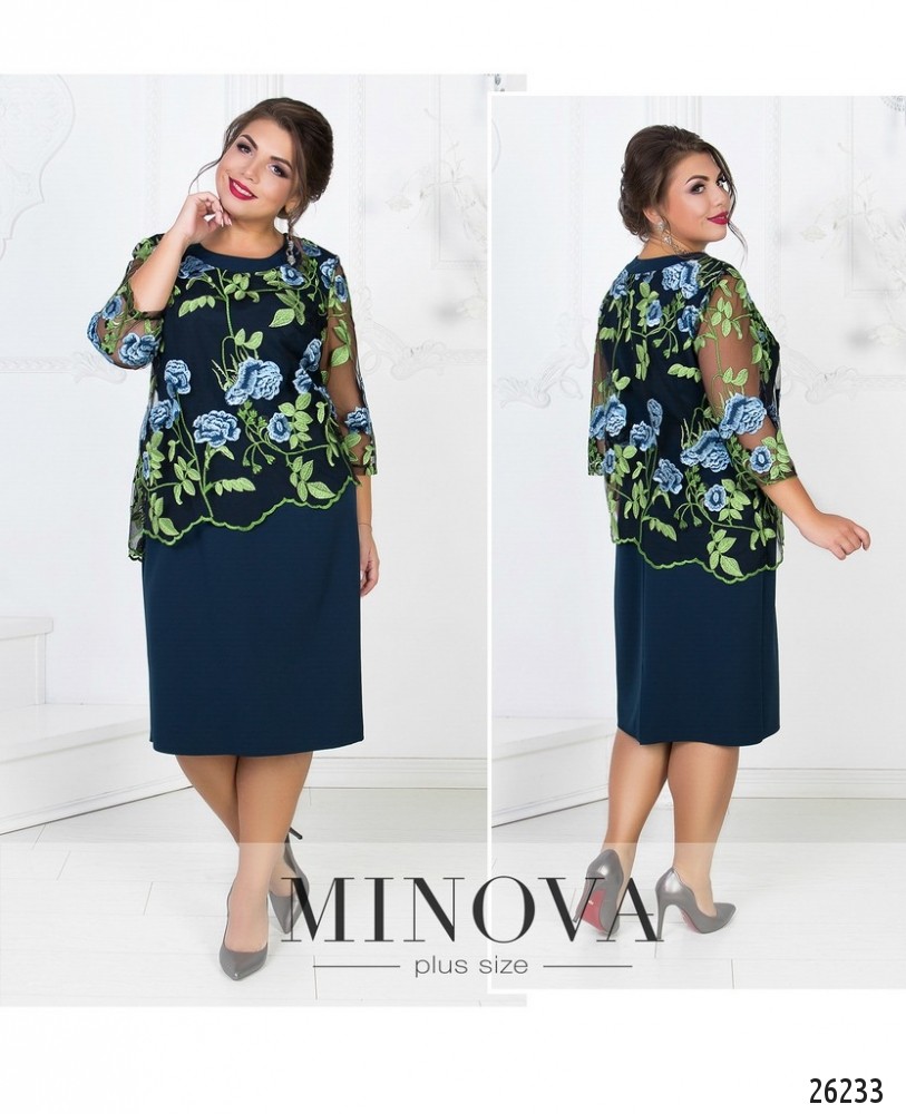 Романтичное платье полуприлегающего силуэта с асимметричной сеткой, расшитой цветами. Нижний слой состоит из плотной однотонной ткани. На спине скрытая молния и разрез по линии шага. Сетка пришита к платью и не снимается. Рукава так же изготовлены из сетки.