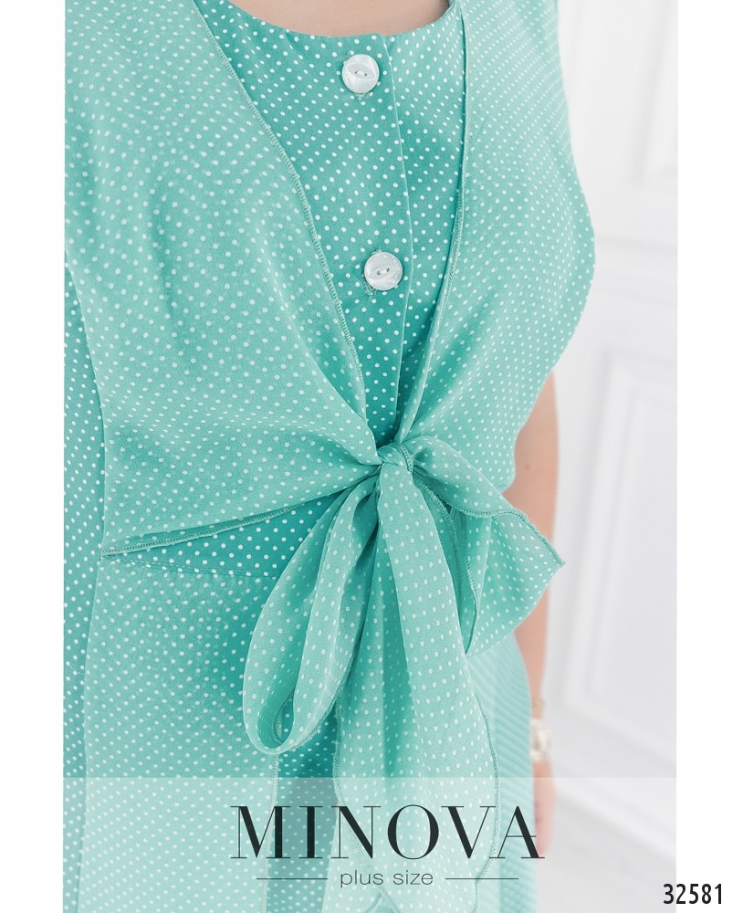 Яркое, летнее, такое свободное платье с запАхом в мелкий горох – из новой летней коллекции платьев большого размера от Minova. Кроме запАха, застёгивается на пуговицы до низу, сзади на талии тоже есть завязки, с помощью которых можно регулировать очертания талии. Платье А-силуэта, очень расклешено к низу, ткань отлично тянется и «дышит». Такой броский наряд можно надеть и на прогулку, и на пляж, и даже в офис – когда начальство в отпуске! Благодаря регулировке пояса и завязок, будет выгодно смотреться на девушках с фигурой «песочные часы», «треугольник» и «прямоугольник».