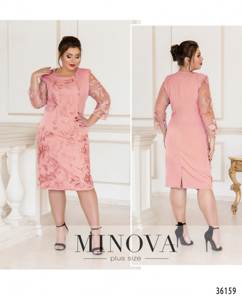 Приталенное платье батал из свежей коллекции женской одежды больших размеров от Minova покорит ваше сердце с первого взгляда своим оригинальным фасоном. Платье А-силуэта, с полукруглым вырезом горловины, без карманов и застёжек. На плечи изнутри подшиты накладки, которые делают линию плеч более ровной. Платье двуслойное спереди: от горловины до подола подшит второй слой из сеточки с цветочным узором. Визуально платье выглядит, словно на него накинута жилетка из гладкой ткани. Спинка полностью гладкая. Рукава длиной ¾. Платье будет хорошо сочетаться с однотонной обувью на каблуке любой высоты.