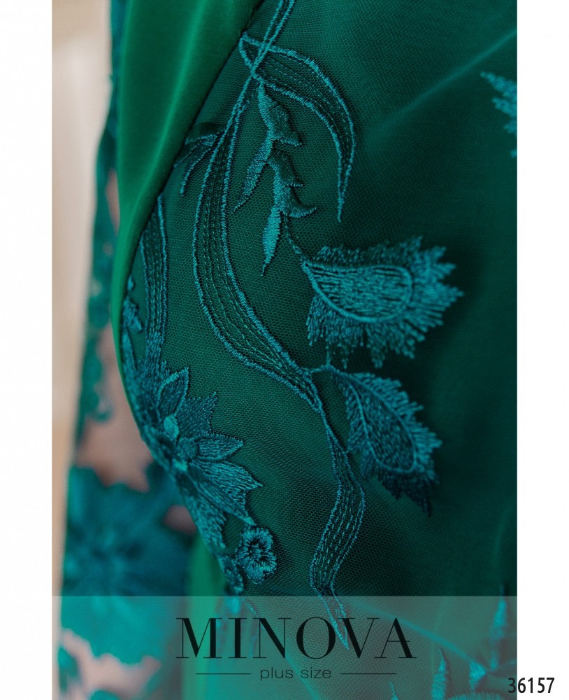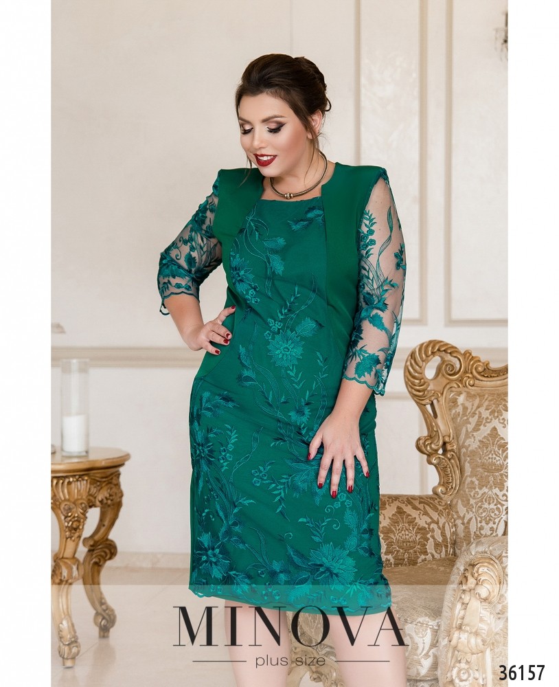 Приталенное платье батал из свежей коллекции женской одежды больших размеров от Minova покорит ваше сердце с первого взгляда своим оригинальным фасоном. Платье А-силуэта, с полукруглым вырезом горловины, без карманов и застёжек. На плечи изнутри подшиты накладки, которые делают линию плеч более ровной. Платье двуслойное спереди: от горловины до подола подшит второй слой из сеточки с цветочным узором. Визуально платье выглядит, словно на него накинута жилетка из гладкой ткани. Спинка полностью гладкая. Рукава длиной ¾. Платье будет хорошо сочетаться с однотонной обувью на каблуке любой высоты.