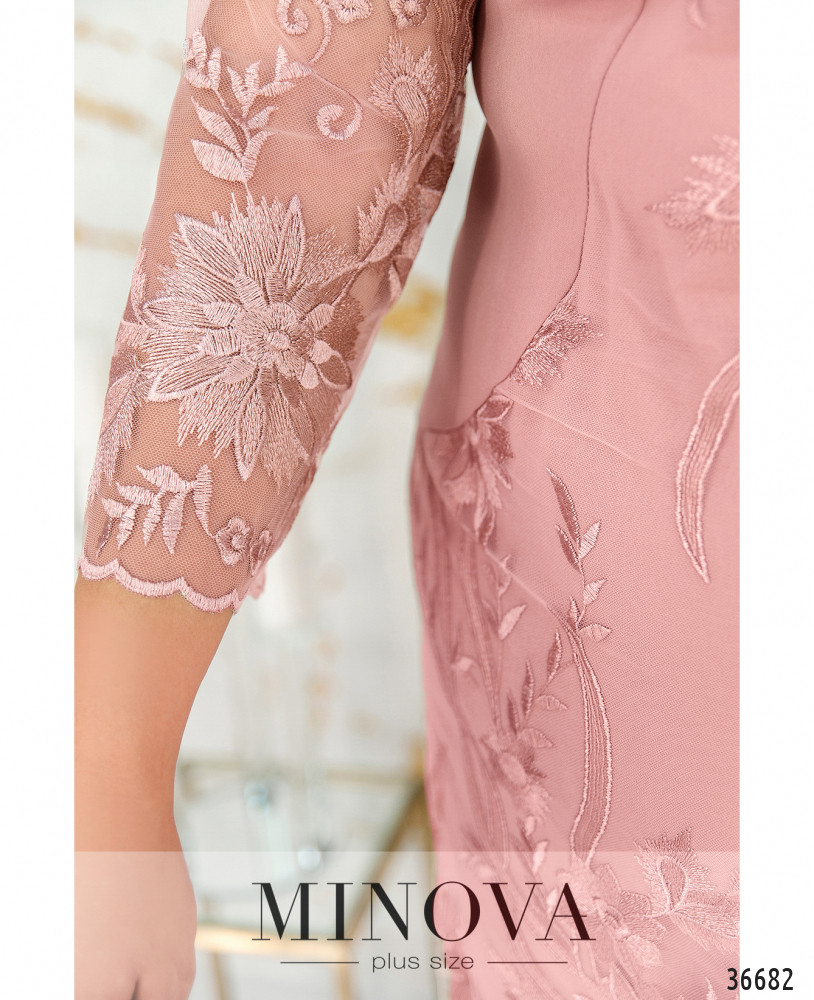 Приталенное платье батал из свежей коллекции женской одежды больших размеров от Minova покорит ваше сердце с первого взгляда своим оригинальным фасоном. Платье А-силуэта, с полукруглым вырезом горловины, без карманов и застёжек. На плечи изнутри подшиты накладки, которые делают линию плеч более ровной. Платье двуслойное спереди: от горловины до подола подшит второй слой из сеточки с цветочным узором. Визуально платье выглядит, словно на него накинута жилетка из гладкой ткани. Спинка полностью гладкая. Рукава длиной ¾. Платье будет хорошо сочетаться с однотонной обувью на каблуке любой высоты.