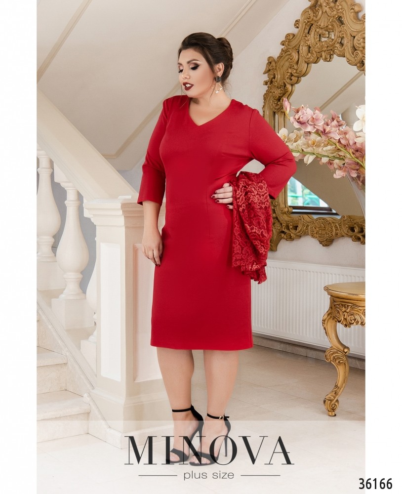 Элегантный костюм-двойка с платьем батал из новой коллекции Minova можно носить и на праздник, и каждый день – для создания праздничного настроения. Накидка из гипюра, без застёжек и карманов, очень нежная и ажурная, словно недлинный пеньюар. Платье из мягкой гладкой ткани, приталенное, с рукавами длиной ¾. Рукава без манжет. На груди вытачки, вырез горловины полукруглый, неглубокий. Наряд однотонный, поэтому вы можете выбирать яркие пёстрые аксессуары в тон или на контрасте. Обувь лучше надевать на каблуке любой высоты.