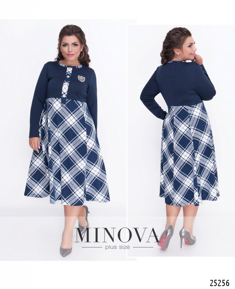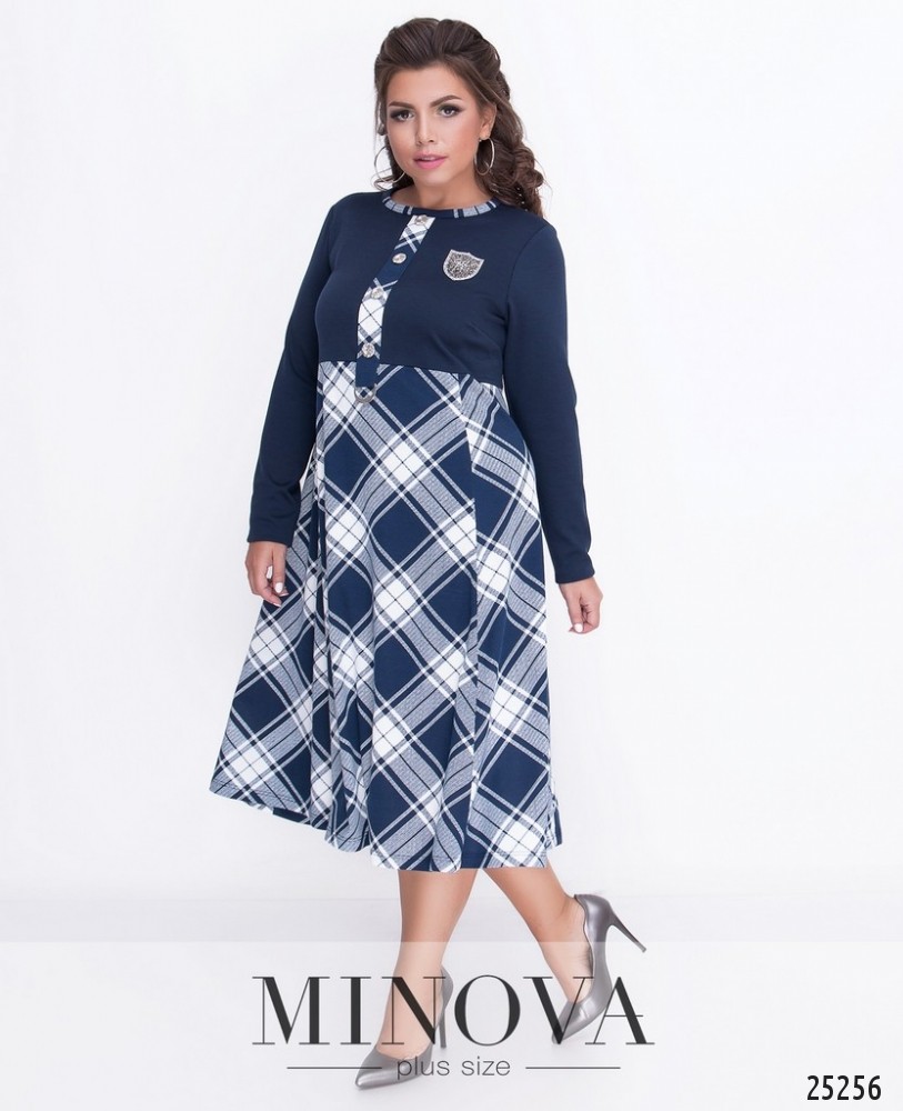 Элегантное платье свободного кроя с отрезной кокеткой. Передняя планка декорирована не рабочими пуговицами, по груди эмблема из страз. Рукава полной длины. Платье без дополнительных застежек.
