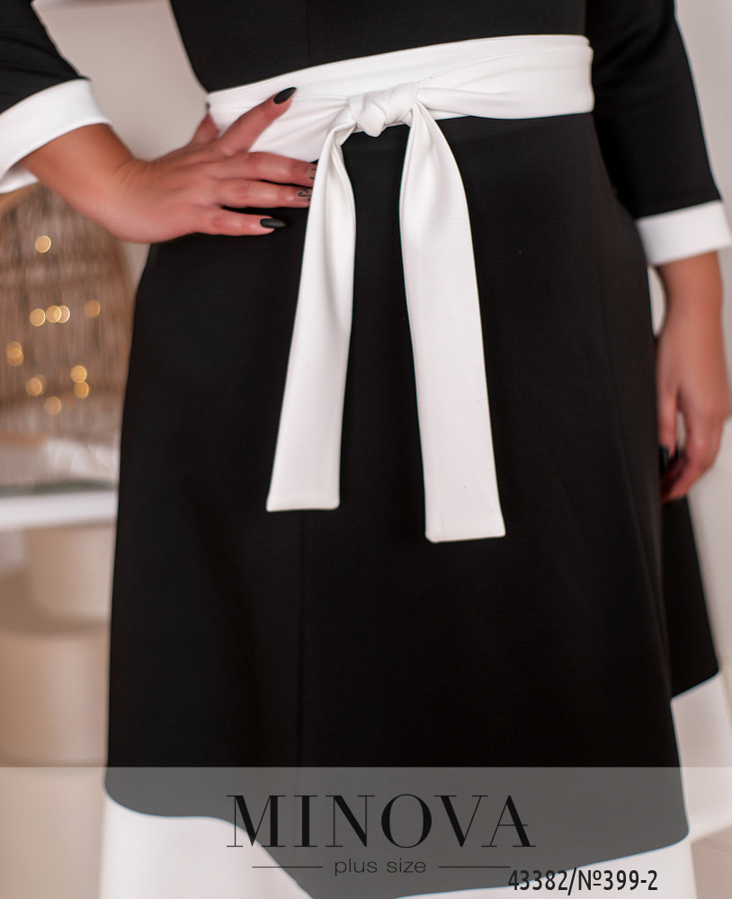 Элегантное минималистичное платье с контрастным поясом, а также с окантовкой полукруглого выреза горловины, подола и рукавов. На рукавах мягкие манжеты без пуговиц. Силуэт приталенный, застёжек и карманов нет.