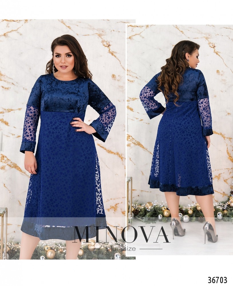 По-настоящему нежное и очень женственное платье батал из свежего каталога Minova создаст праздничное настроение на любом мероприятии! Платье А-силуэта, без застёжек и карманов. Верх выполнен из мягкой плюшевой ткани, бархатистой на ощупь. Такой же материал – на манжетах рукавов полной длины и снизу на подоле. Рукава от локтя до манжета – из полупрозрачной ткани, так же как и верхний слой подола. Снизу на подоле мягкая подкладка. Лиф подшит к подолу. Вырез горловины полукруглый, неглубокий. Длина миди. В каталоге представлены глубокие тёмные оттенки и нежный пастельный вариант.