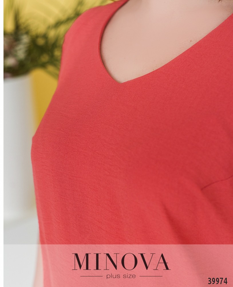 Лёгкое и стильное платье батал с врезными карманами по бокам, рукава короткие, с подворотами, вырез горловины неглубокий, на груди вытачки, застёжек нет.