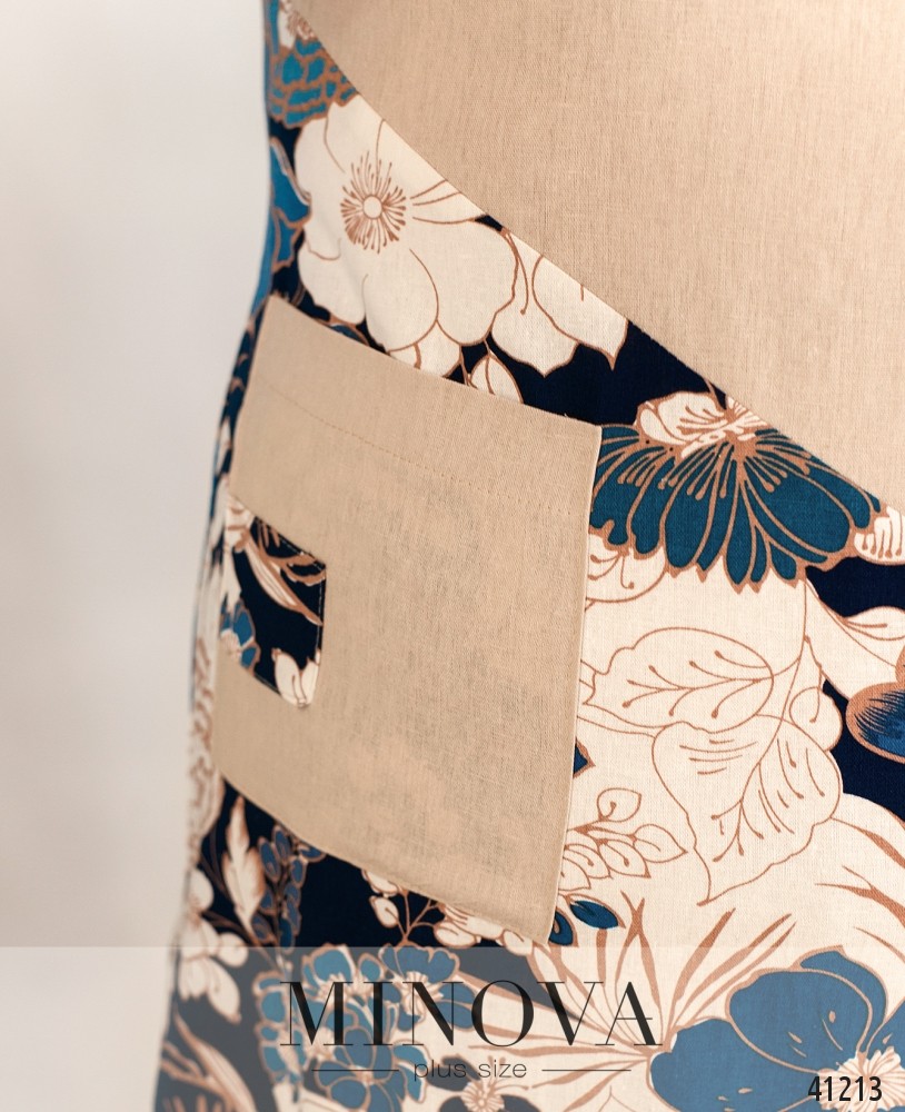 Нежное и женственное платье батал с цветочным принтом - спинка полностью покрыта принтом, передняя часть - фрагментами. На груди диагональные вытачки, вырез горловины полукруглый, сбоку на правом бедре - накладной карман. Рукава без манжет. Застёжек нет. Силуэт приталенный, сзади на подоле шлица.