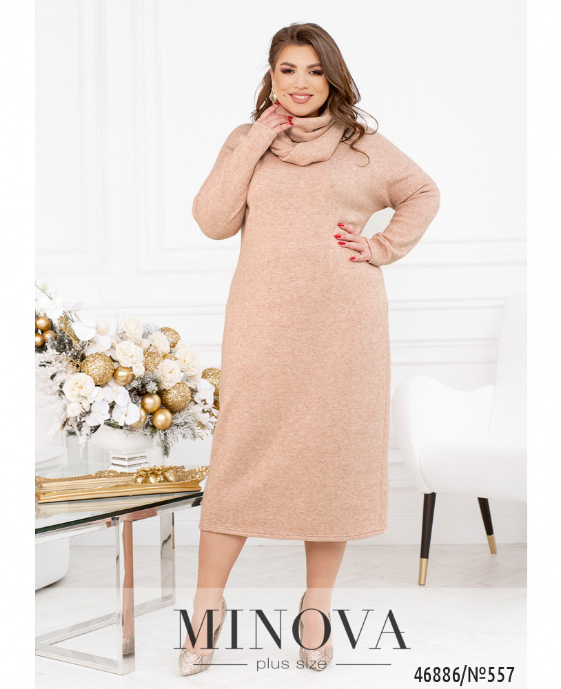 Минималистичное женственное платье, выполненное из мягкой ангоровой ткани, способно придать очертаниям фигуры мягкости и естественности. Модель без застежек дополнена рукавами "летучая мышь". А шарф-хомут, который идет в комплекте, идеально дополнит это платье и согреет вас в прохладные дни.