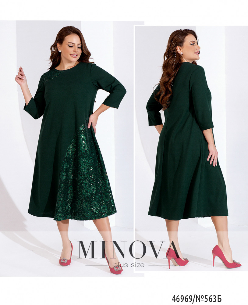 Женственное яркое платье А-силуэта поможет вам выглядеть привлекательно и чувствовать себя комфортно на любой вечеринке. Модель дополнена декоративными вставками с пайетками на передней части платья и рукавами 7/8.