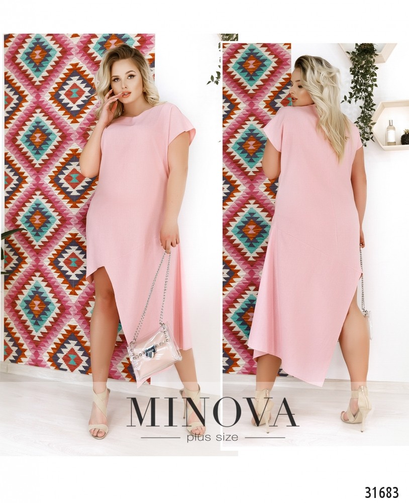 Яркое трендовое платье с короткими рукавами и круглым вырезом. Платье с ассиметричным подолом.