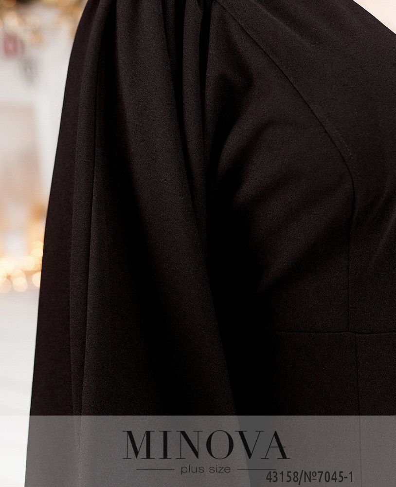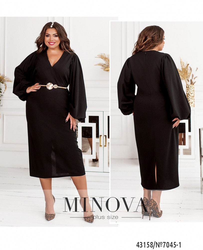 Минималистичное платье батал с пейзанским рукавом - широким по длине и зауженным к запястью, на запястьях вшиты резинки. Лиф подшит на запАх и пришит к подолу, застёжка - молния, вшитая по спинке. Силуэт приталенный, на подоле сзади шлица. Карманов нет.