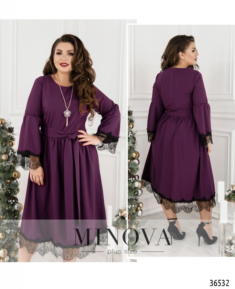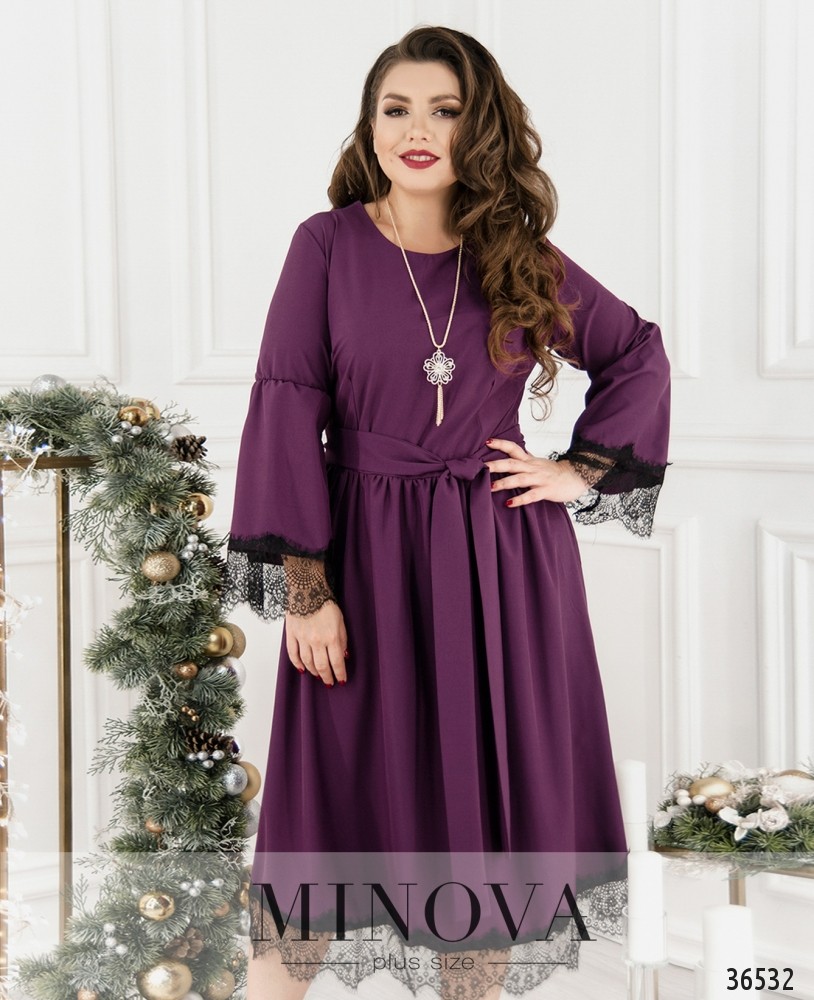 На первый взгляд довольно простое, но на самом деле очень милое и привлекательное платье А-силуэта из свежего каталога платьев батал от Minova. Платье с подшитым к лифу подолом, подол расклешён и ниспадает мягкими складками. Ничего лишнего, кроме очаровательного кружева, которое украшает подол и рукава полной длины. Кружевные вставки делают этот наряд неординарным и свежим. К платью прилагается пояс в тон и изящная подвеска на длинной цепочке. Застёгивается на вшитую по спинке змейку, карманов нет, на груди – небольшие вытачки. Однотонная глубокая расцветка даёт возможность вписать это платье в твой базовый гардероб! Украшение входит в комплект.
