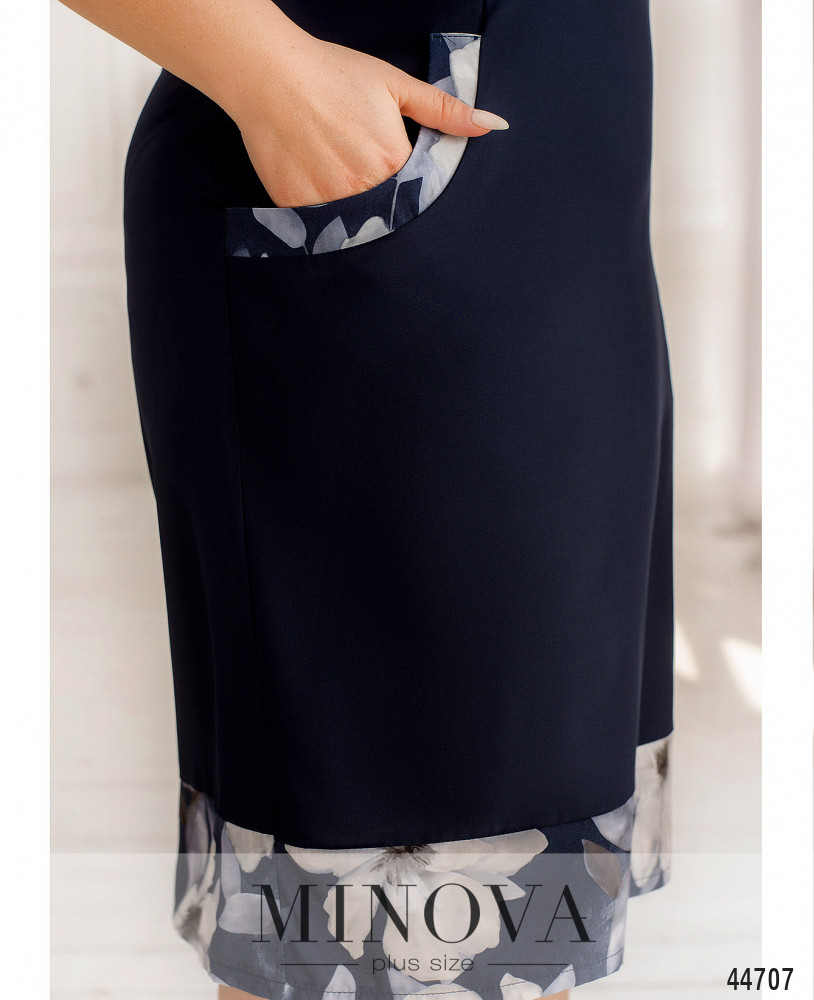 Стильное и яркое платье с полукруглым вырезом горловины, рукава удерживаются на плечах с помощью вшитой сверху резинки. По бокам - карманы, отороченные контрастной лентой, как горловина и подол. Сзади на подоле шлица. На груди - округлые длинные вытачки. Застёжка - вшитая по спинке молния.