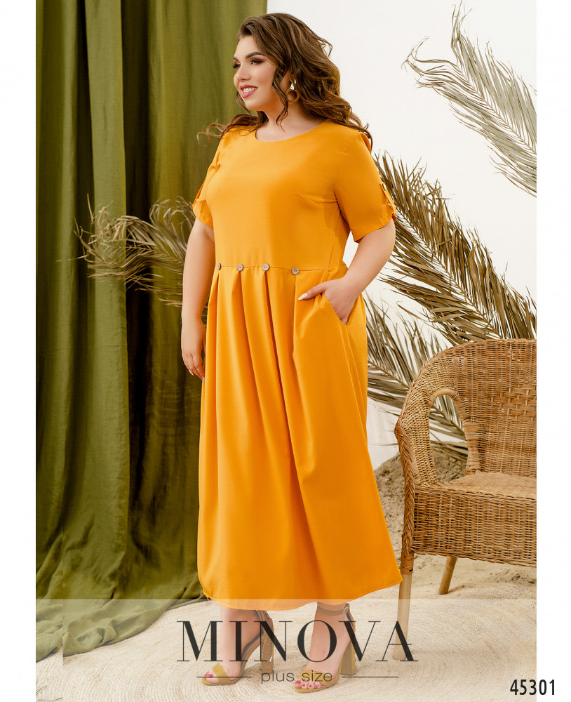 Легкое лаконичное платье миди с короткими рукавами и змейкой на спинке выполнено в актуальных однотонных оттенках. Изюминкой этой модели стали удобные карманы в боковых швах и широкие складки на юбке, декорированные пуговицами по линии талии.