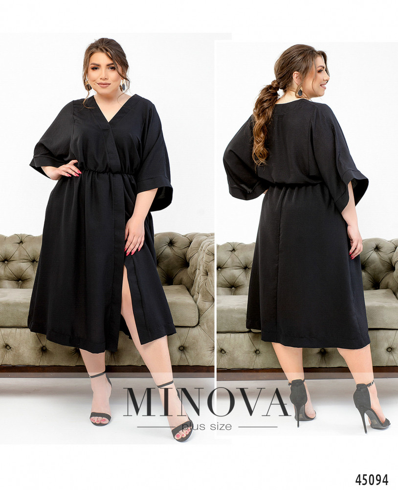 Стильное и минималистичное платье на запАх с широкими рукавами-кимоно без застёжек и карманов. Талия на резинке создаст женственный силуэт.