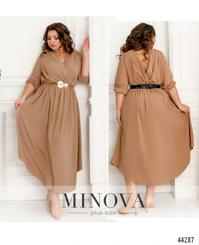 56 р-р: длина платья 125см, длина рукава от плечевого шва 42см, обхват рукава 45см, ОГ - 116см, ОТ -92см, ОБ -128см.