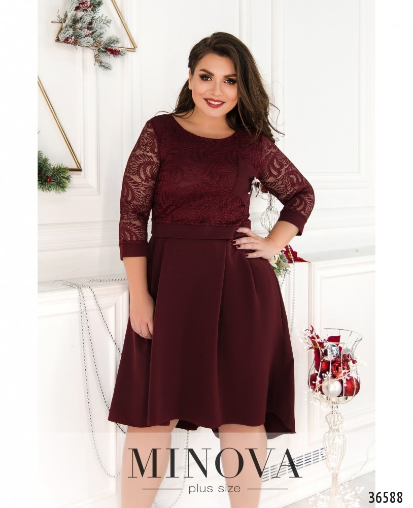 Такое мягкое и ажурное кружево, такая приятная подкладка! Да и в общем платье производит очень приятное впечатление. Minova представляет новую модель платья батал с подшитой сверху кружевной накидкой, которая доходит до талии и оканчивается более плотным манжетом. Рукава полной длины, полностью из кружева с небольшими манжетами без пуговиц. На платье и на накидке на груди вытачки. На гружеве на левой стороне груди нашит небольшой накладной кармашек из гладкой ткани, украшенный очаровательной стрекозой. По бокам – врезные карманы. Платье с асимметричным подолом, по спинке чуть длиннее, вырез горловины широкий, полукруглый, застёжек нет. Прекрасный выбор для праздника! Украшение входит в комплект.