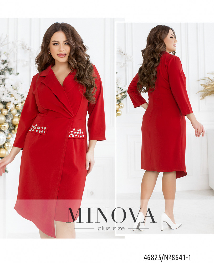 В женственном платье-миди приталенного силуэта, подшитом на запах, вы будете очаровательны как в офисе, так и на вечеринке или празднике. Эта модель дополнена воротником с лацканами, рукавами 7/8 без манжет и накладными клапанами без карманов, дополненными декоративными украшениями. Изюминку добавляет ассиметричный подол, удлиненный спереди. Платье застегивается на змейку, вшитую по спинке.