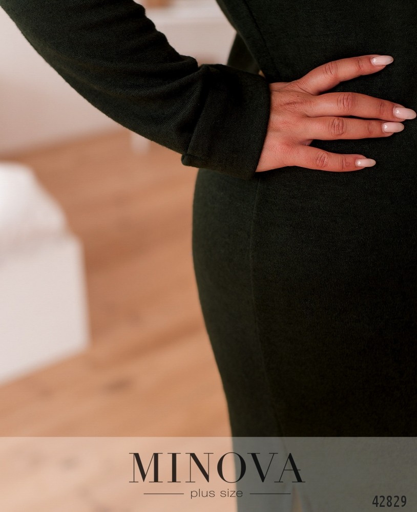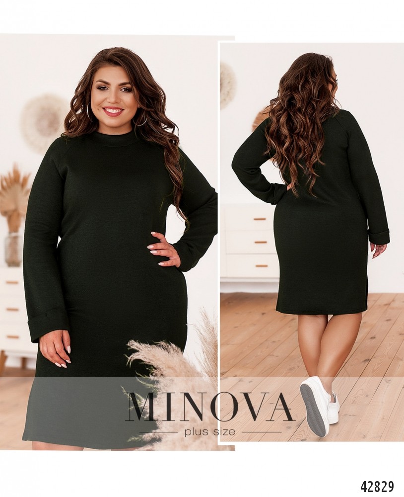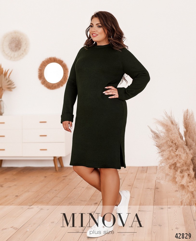 Мягкое комфортное платье батал без застежек и карманов, рукава с подшитыми манжетами, вырез горловины с манжетом. По бокам подола - разрезы.