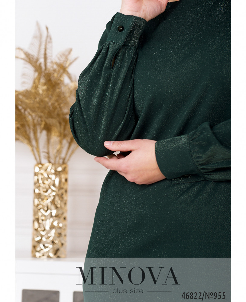 Женственное лаконичное платье, выполненное из однотонной ткани с люрексовой нитью, найдет широкое применение в вашем гардеробе и пригодится для праздников, дружеских встреч и вечеринок. Модель свободного кроя дополнена длинными рукавами с манжетами на пуговицах. Платье застегивается на маленькую пуговицу на горловине сзади.