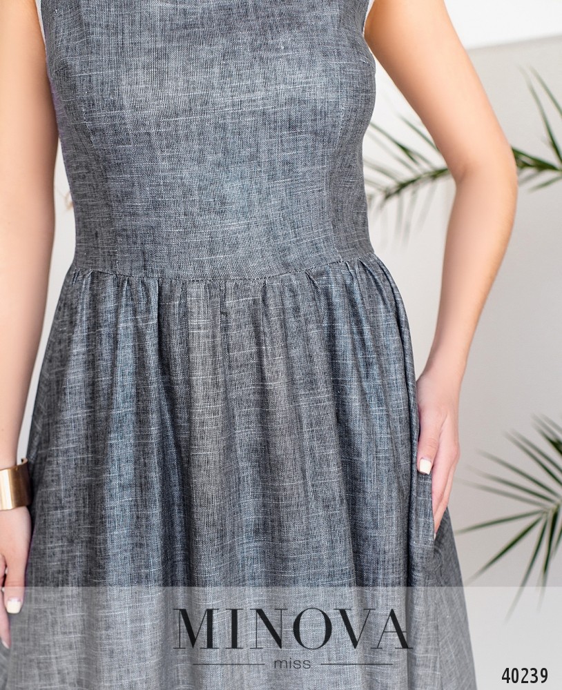 Повседневное минималистичное платье без рукавов, с контрастной окантовкой выреза горловины и пройм. Подол подшит к верху и расклешён, застёжка - вшитая по спинке молния. По бокам - врезные карманы.