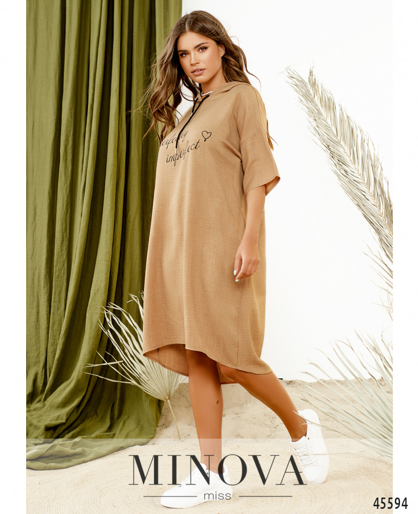 Лаконичное платье в спортивном стиле отличается универсальностью, удобством и практичностью. Эта модель дополнена декоративным принтом на груди, капюшоном на кулиске, короткими рукавами с приспущенной линией плеч и карманами в боковых швах Пояс НЕ входит в комплект.