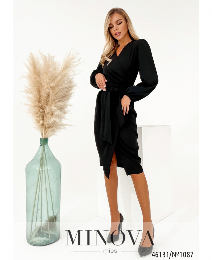 Стильное однотонное платье с длинными объемными рукавами на резинках может в полной мере подчеркнуть достоинства фигуры и помочь создать женственный и нежный образ. Модель завязывается на запАх, что позволяет регулировать ее посадку на талии. Дополните образ широким текстильным поясом, который входит в комплект.