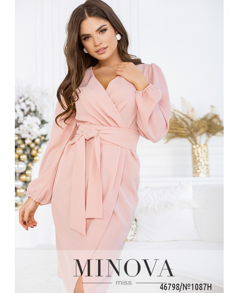 Стильное однотонное платье с длинными объемными рукавами на резинках может в полной мере подчеркнуть достоинства фигуры и помочь создать женственный и нежный образ. Модель завязывается на запАх, что позволяет регулировать ее посадку на талии. Дополните образ широким текстильным поясом, который входит в комплект.