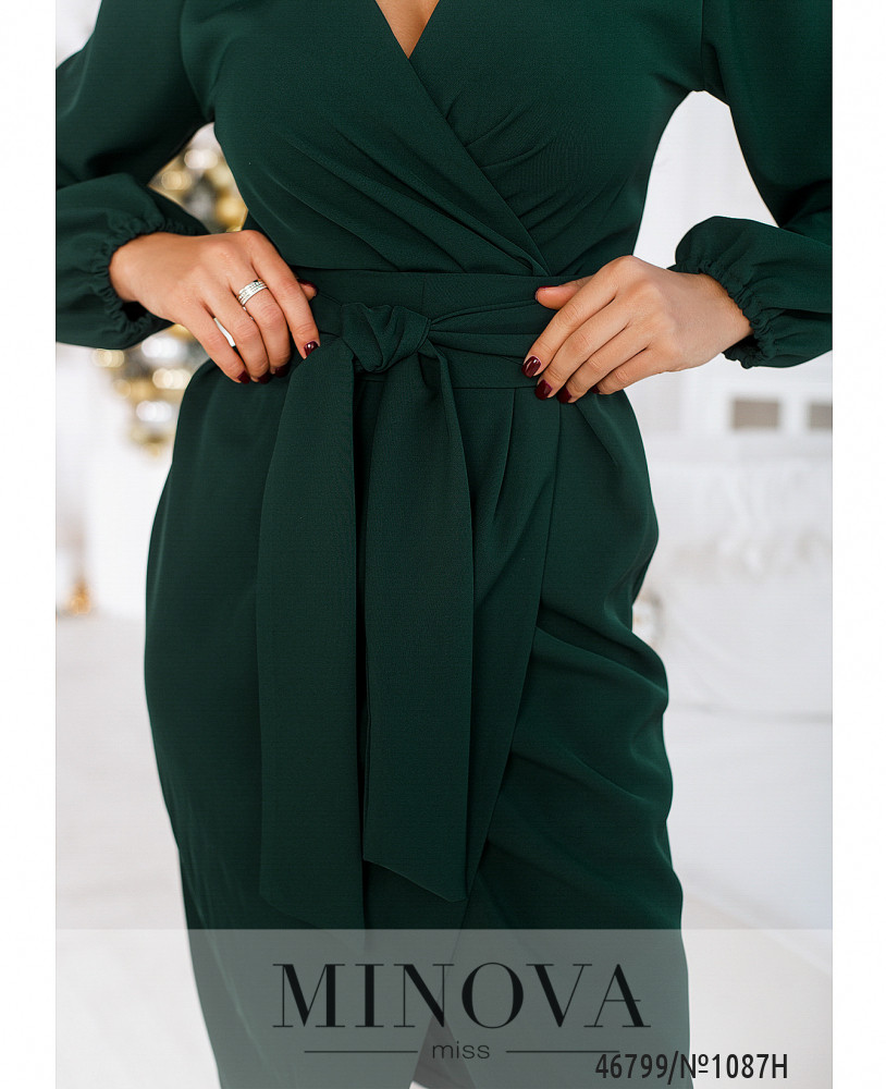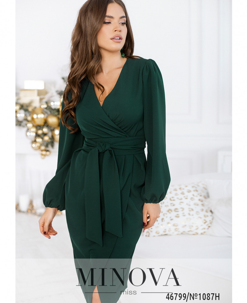 Стильное однотонное платье с длинными объемными рукавами на резинках может в полной мере подчеркнуть достоинства фигуры и помочь создать женственный и нежный образ. Модель завязывается на запАх, что позволяет регулировать ее посадку на талии. Дополните образ широким текстильным поясом, который входит в комплект.