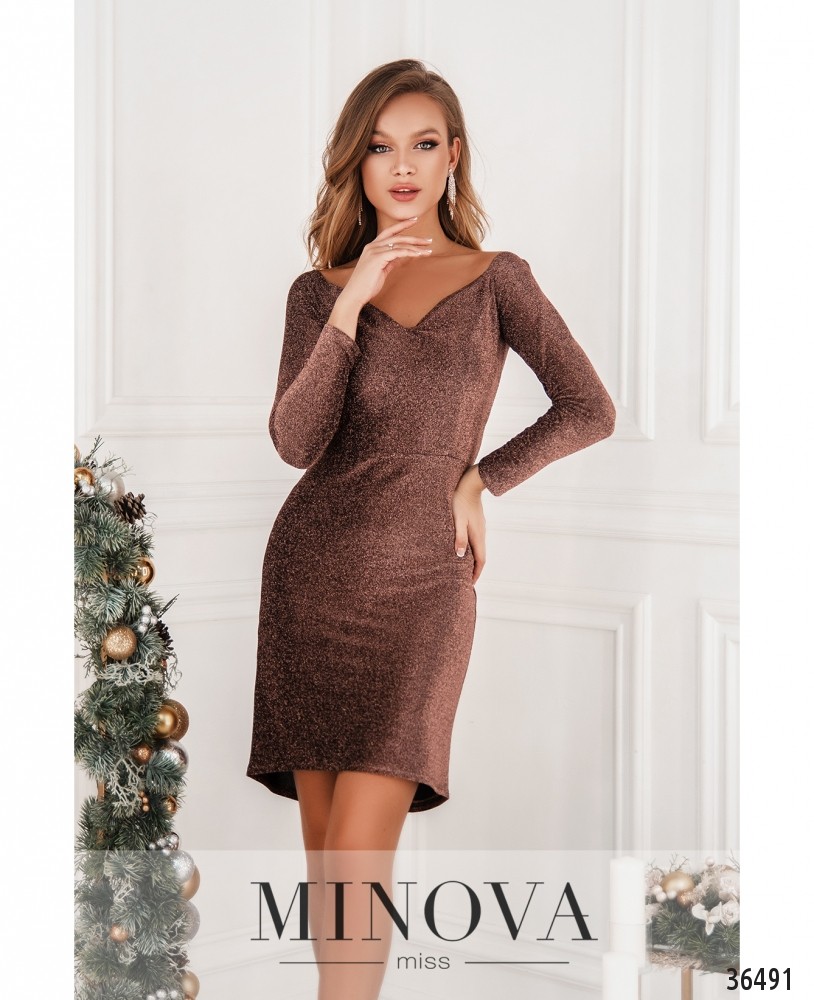 Очаровательное и очень нарядное платье из нового каталога женской одежды от Minova пригодится для твоей новогодней вечеринки или другого торжественного мероприятия! Платье приталенное, рукава полной длины, подол подшит к верху. Вырез горловины – фигурное каре, создающее элегантное декольте. Карманов нет, застёгивается на вшитую по спинке молнию. На груди – продольные вытачки до талии. Длина – до колена. Удачный выбор для девушек с фигурой типа «песочные часы». Выбери подходящие однотонные аксессуары и классическую обувь для создания завершённого образа!