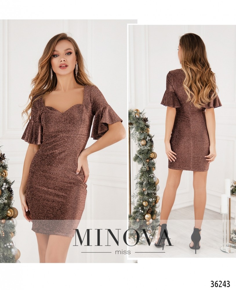 Очаровательное женственное платье для твоего великолепного праздника! Minova представляет модель из мягкой ткани с люрексом, который переливается при электрическом освещении. Изнутри ткань мягкая. Вырез горловины – фигурное каре, от него – две продольные вытачки на груди. Рукава до середины локтя, с оборками. Карманов нет, застёжка – вшитая по спинке змейка. Длина – до колена. Платье будет удачно смотреться на фигуре типа «песочные часы» или «груша». Носить рекомендуем с туфельками на высоком каблуке или танкетке.