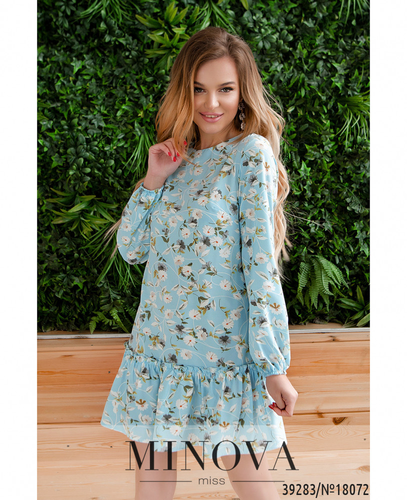 Женственное и приятное платье с полукруглым вырезом горловины и пуговицей с петелькой сзади под шеей. Платье без карманов, в рукава на запястьях вшиты резинки, подол с подшитыми снизу оборками.