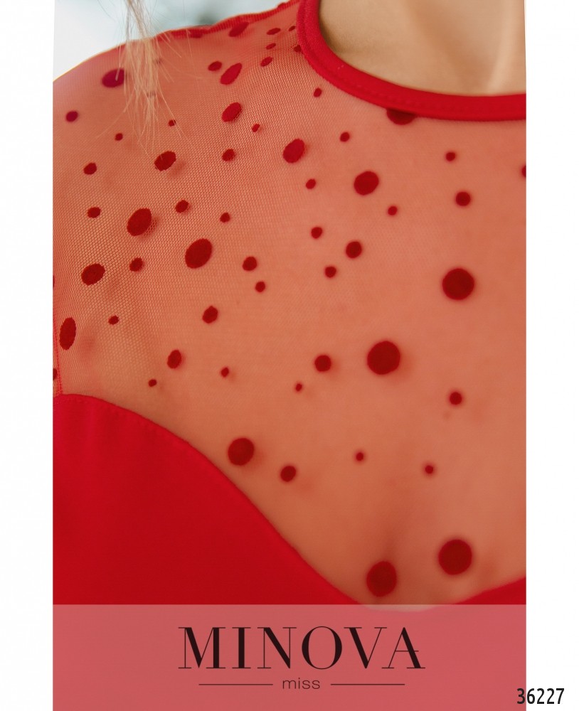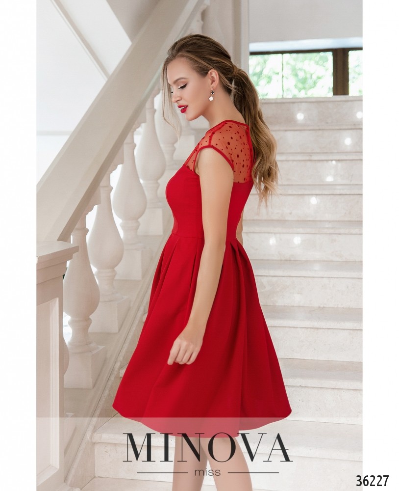 Такое милое, стильное и женственное нарядное платье из нового каталога женской одежды от Minova. Платье из мягкой ткани, с прямым лифом, вырез лифа «фигурное каре», но сверху – прозрачный шифон с полукруглым вырезом горловины. Рукавов нет, а подол подшит к лифу и ниспадает мягкими оборками, так что платье относится к А-силуэту. По бокам – врезные карманы, застёжка вшита по спине от горловины до талии. Нежный стиль этого платья требует классических украшений и обуви на каблуке любой высоты. Особенно удачным фасон окажется для девушек с типом фигуры «перевёрнутый треугольник».