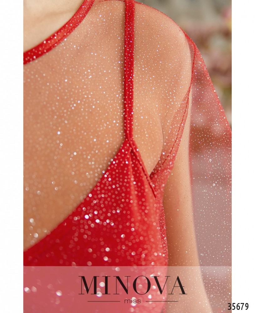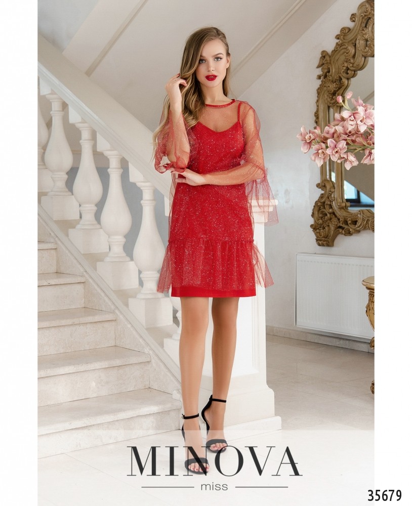 Любишь блистать и покорять окружающих своим отменным чувством стиля? Тогда у Minova есть для тебя отличный вариант – праздничное нарядное платье с двумя слоями: мягким и шифоновым. Из мягкой ткани изготовлено мини-платье на тонких лямках, с V-образным вырезом, без застёжек и карманов. Верхний, шифоновый, слой прикрывает плечи, накрывает подол и создаёт рукава. Манжеты рукавов расклешены. Застёжек на верхнем слое также нет, платье легко надевается. Подол внизу с оборками. Будет хорошо смотреться на фигуре типа «песочные часы» или «прямоугольник».
