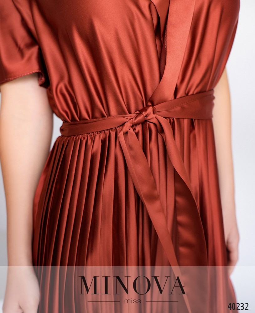 Элегантное платье со свободным запАхом и вшитой в пояс резинкой. В комплекте пояс в тон платью. Без застёжек и карманов, подол плиссированный. Рукава свободные, расклешённые. Пояс/аксессуар входит в комплект.