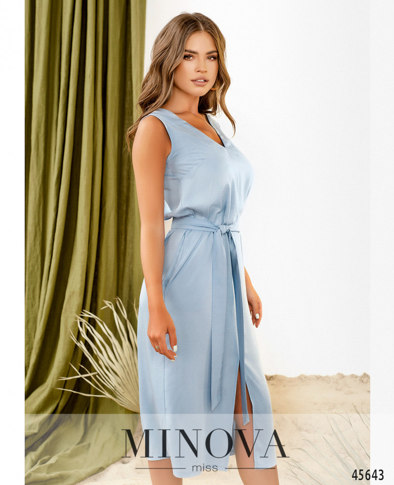 Минималистичное однотонное платье прямого кроя с V-образным вырезом горловины впереди и на спинке подойдет для прогулок и встреч с друзьями, шоппинга и вечеринки. Модель дополнена изящной шлицей спереди и текстильным поясом в тон, который входит в комплект