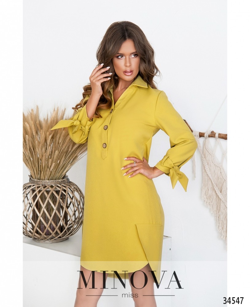 Лёгкое, простое, идеальное для базового гардероба платье-рубашка А-силуэта из нового каталога женской одежды от Minova. Платье с отложным воротничком, рядом круглых пуговиц от воротника до груди, рукава длиной ¾. На рукавах через шлейки пропущен поясок, как на плаще-тренчкоте, поясок можно завязать бантом. Подол асимметричный, по спинке чуть длиннее, по бокам подшито на небольшой запАх. На груди вытачки, карманов нет. Прекрасный выбор для повседневного гардероба, можете сочетать эту модель с любой удобной обувью.