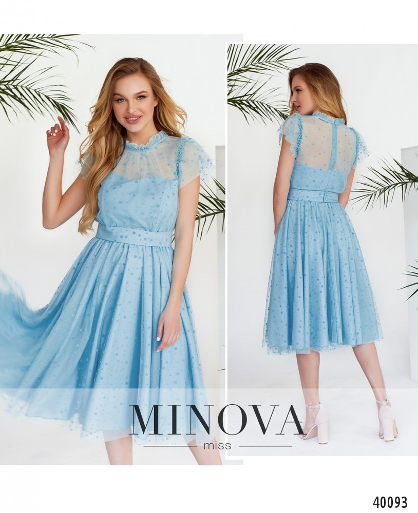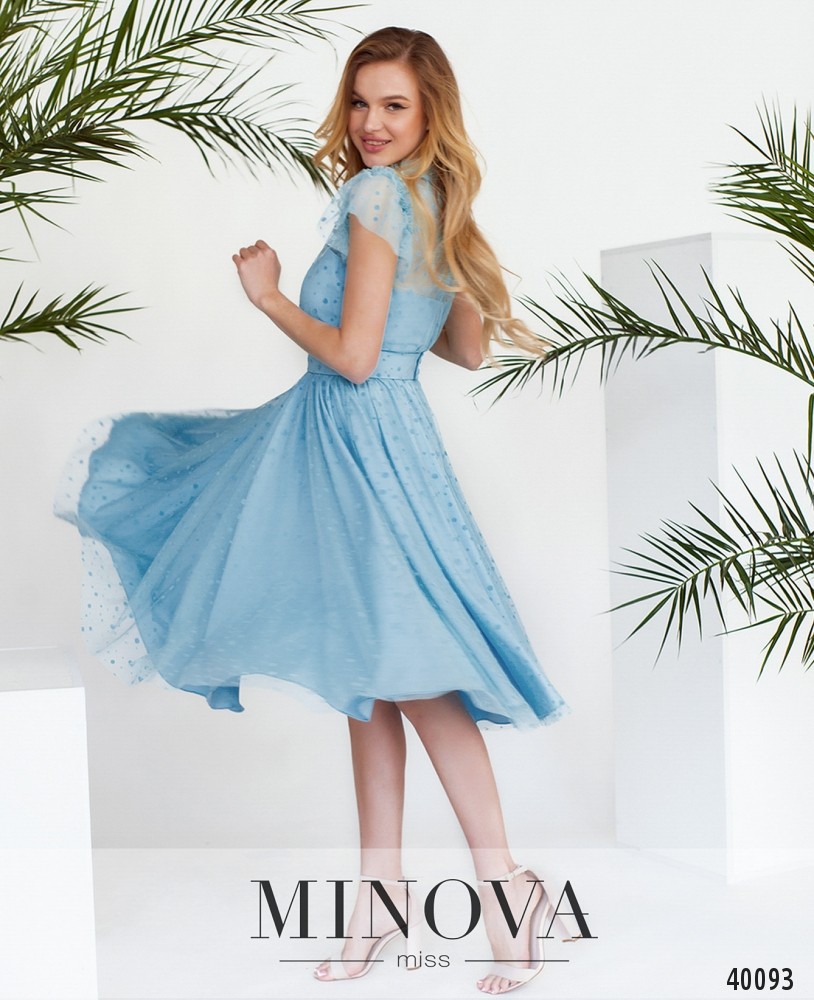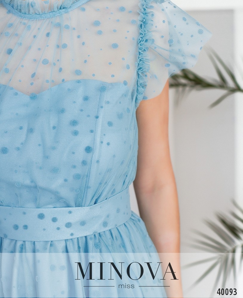 Нарядное платье с полупрозрачным верхним слоем и мягким нижним слоем. Рукава-лепестки из прозрачной ткани. Подол подшит к верху и расклешён. В комплекте - пояс, который застёгивается на две пуговки. Платье застёгивается на молнию, вшитую по спинке. В лиф вшиты две крепкие дуги, как в корсет, что помогает удерживать изящную форму. Карманов нет. Талия платья на резинке, поэтому параметры обхвата талии указаны в свободном и растянутом виде.