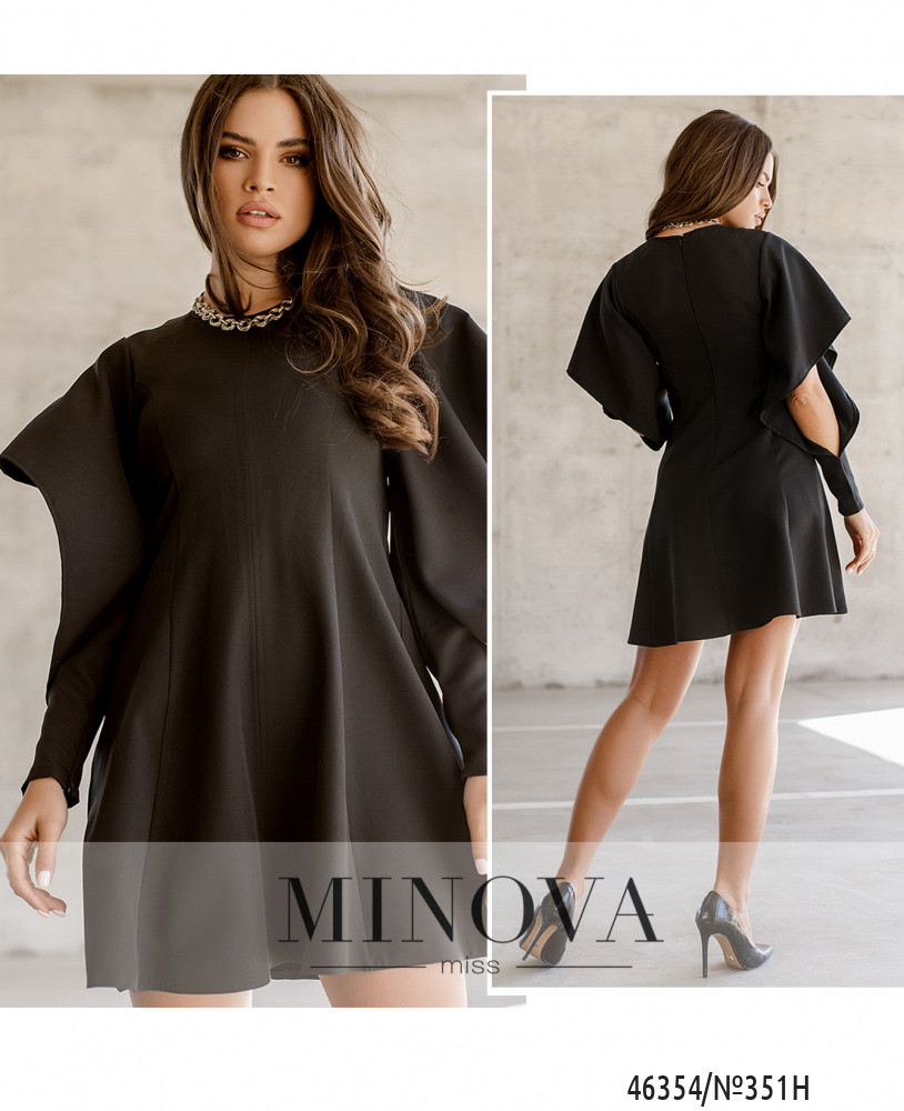 Минималистичное однотонное платье сделает ваш образ стильным, модным и изысканным. Изюминкой данной модели являются объемные рукава с разрезами, идеально дополняющие воздушный силуэт платья. Модель застегивается на незаметную молнию, вшитую по спинке.