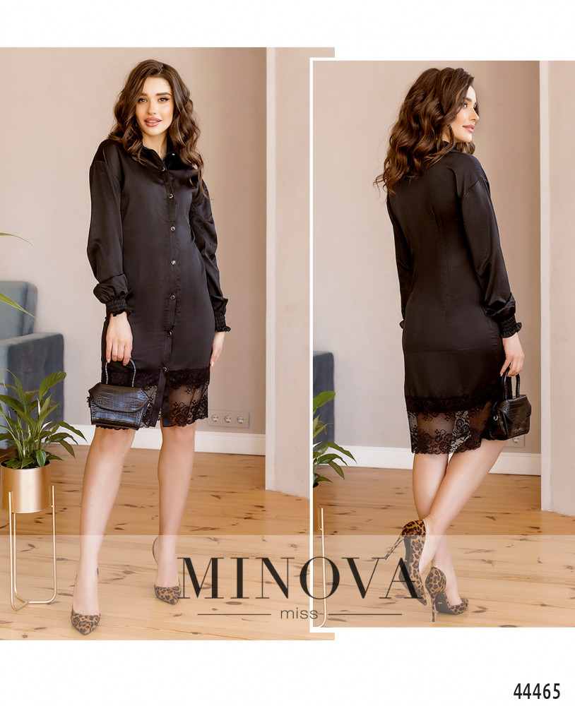 Стильное платье-рубашка без карманов. Воротничок отложной, застёжка - ряд пуговиц спереди на планке. В манжеты вшита очень плотная широкая резинка. Подол украшен ажурным кружевом.