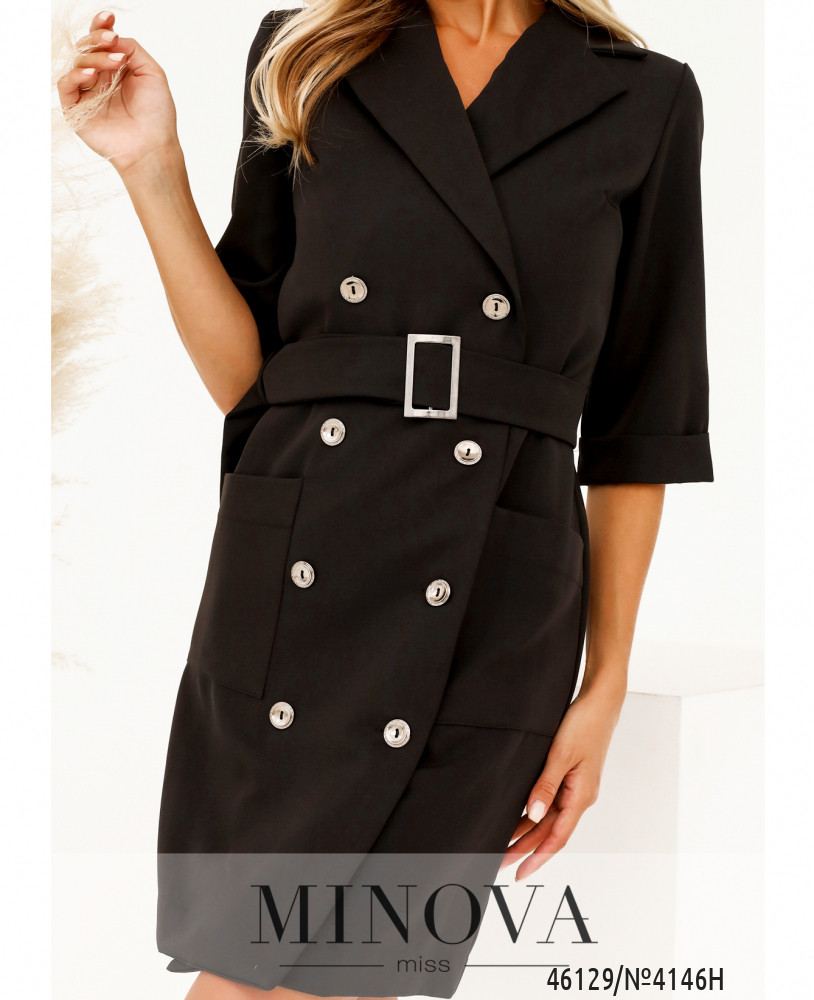Элегантное платье, застегивающееся на ряд пуговиц спереди, подчеркивают хрупкость и утонченность женской фигуры. Модель дополнена воротником с лацканами, накладными карманами и текстильным поясом в тон.