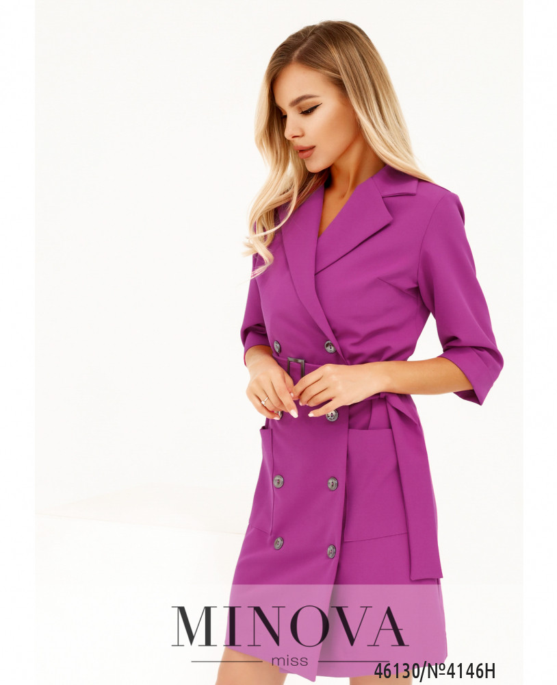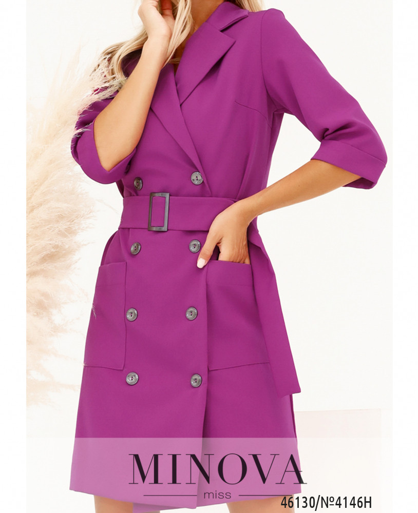 Элегантное платье, застегивающееся на ряд пуговиц спереди, подчеркивают хрупкость и утонченность женской фигуры. Модель дополнена воротником с лацканами, накладными карманами и текстильным поясом в тон.