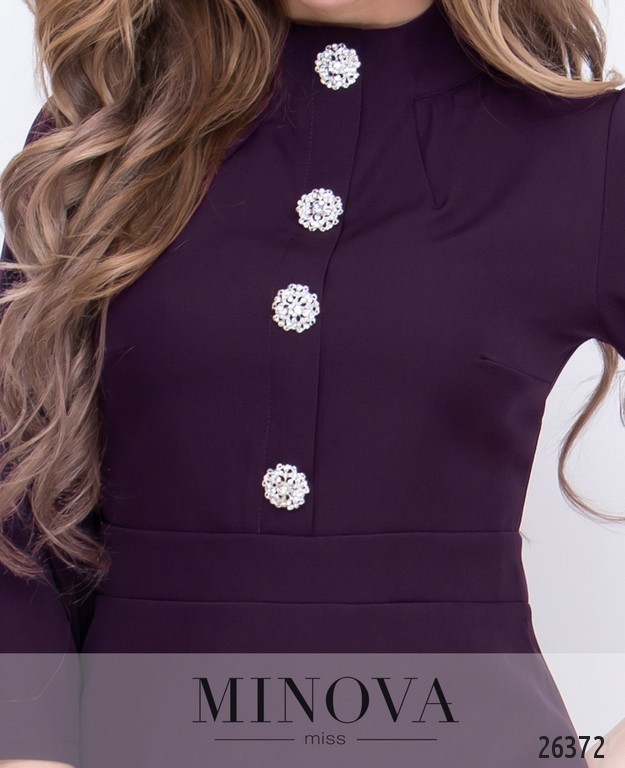 Лаконичное платье, которое подойдет для офисного, кэжуального гардероба. Платье с небольшой горловиной, рукавами до локтя. Лиф декорирован съёмными брошками. По талии вшивной пояс, который подчеркнет линию талии. От талии платье идет свободного кроя. По спинке скрытая молния.