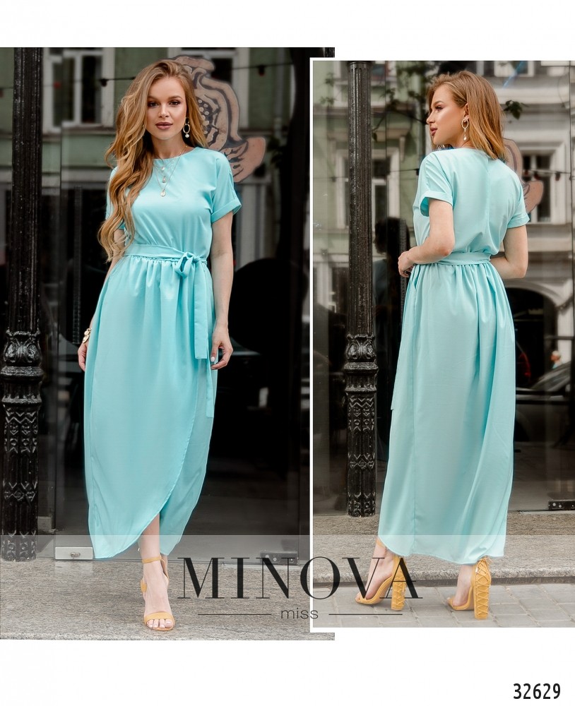 Такие симпатичные оттенки платьев из новой коллекции Minova радуют глаз своей палитрой. Как будто ассорти конфет! Если пастельный – то очень нежный и чистый, если яркий – то глубокий и запоминающийся. Представленная модель платья застёгивается сзади на пуговку; на поясе – резинка, моделирующая талию и создающая лёгкие волны на подоле. Кроме того, в комплекте пояс. В наличии карманы. Вырез горловины – полукруглый, а вот подол – с запАхом. Ткань тонкая, не тянется и не просвечивает.